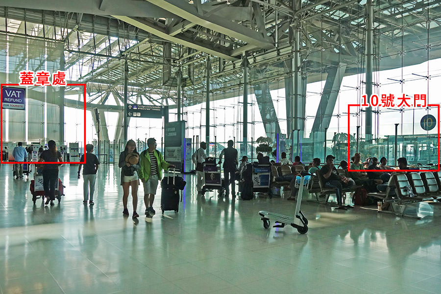 1.携带好 退税申请表+收据+护照+物品,前往海关柜台在机场10号门附近
